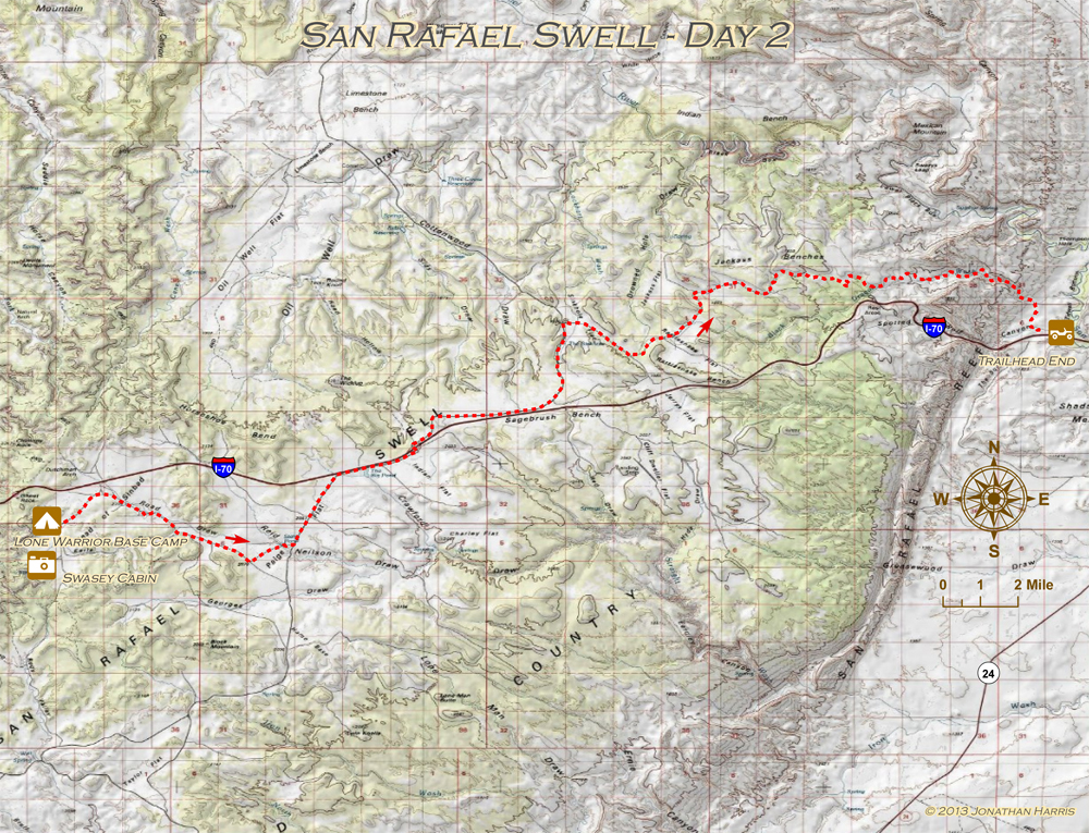 Green River to the east along I-70, Salina to the west along I-70, Castle Dale or Price to the north along SR10 and Hanksville to the south along SR24. Please arrive to camp with plenty of fuel for the two days on the trail as a trip to either location is several hours away. Green River or Salina would be ideal as your heading to base camp on the Tuesday as our camp is very close to I-70. We will be exiting the Swell to the south on Thursday afternoon so Hanksville or Green River would be good choices for those continuing on to Moab.